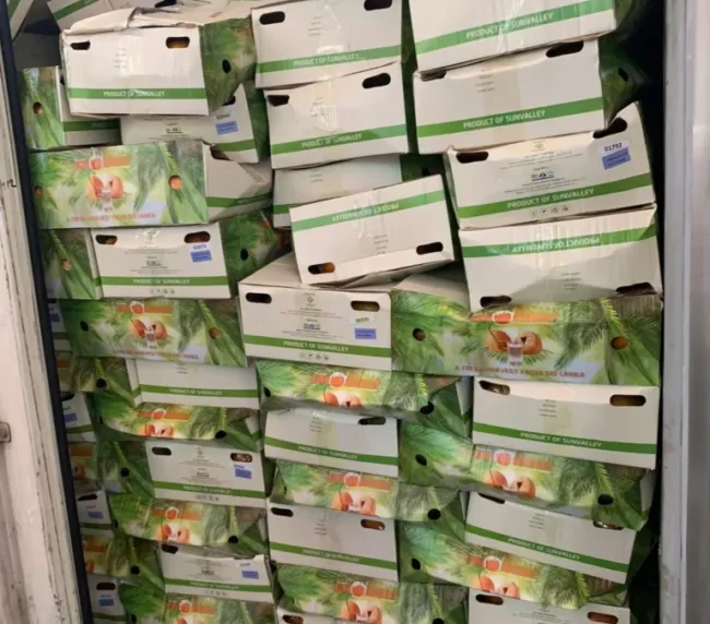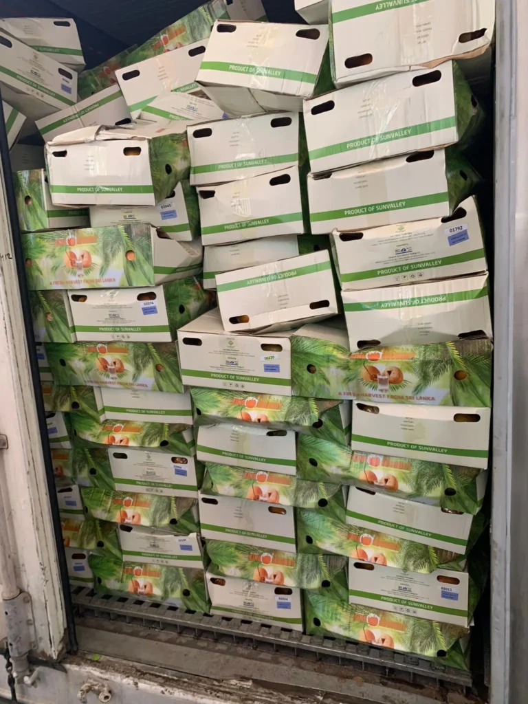 A container of fresh king coconuts from Sri Lanka from our trusted supplier Sunvalley has arrived at the fruit and vegetable market Al Aweer Dubai.